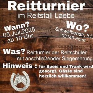 Ab 10 Uhr präsentieren die Reitschüler auf dem Gelände des Reitstall Laebe ihr Können und stellen sich der Jury, die Punkt vergibt. Da ist Lampenfieber vorprogrammiert, denn Reiter und Pferd wollen das Beste zeigen. Es ist bereits das 3. Hofturnier, das Jenny Laebe organisiert und wir dürfen gespannt sein, welche Fortschritte im letzten Jahr beim Reiten erreicht wurden.